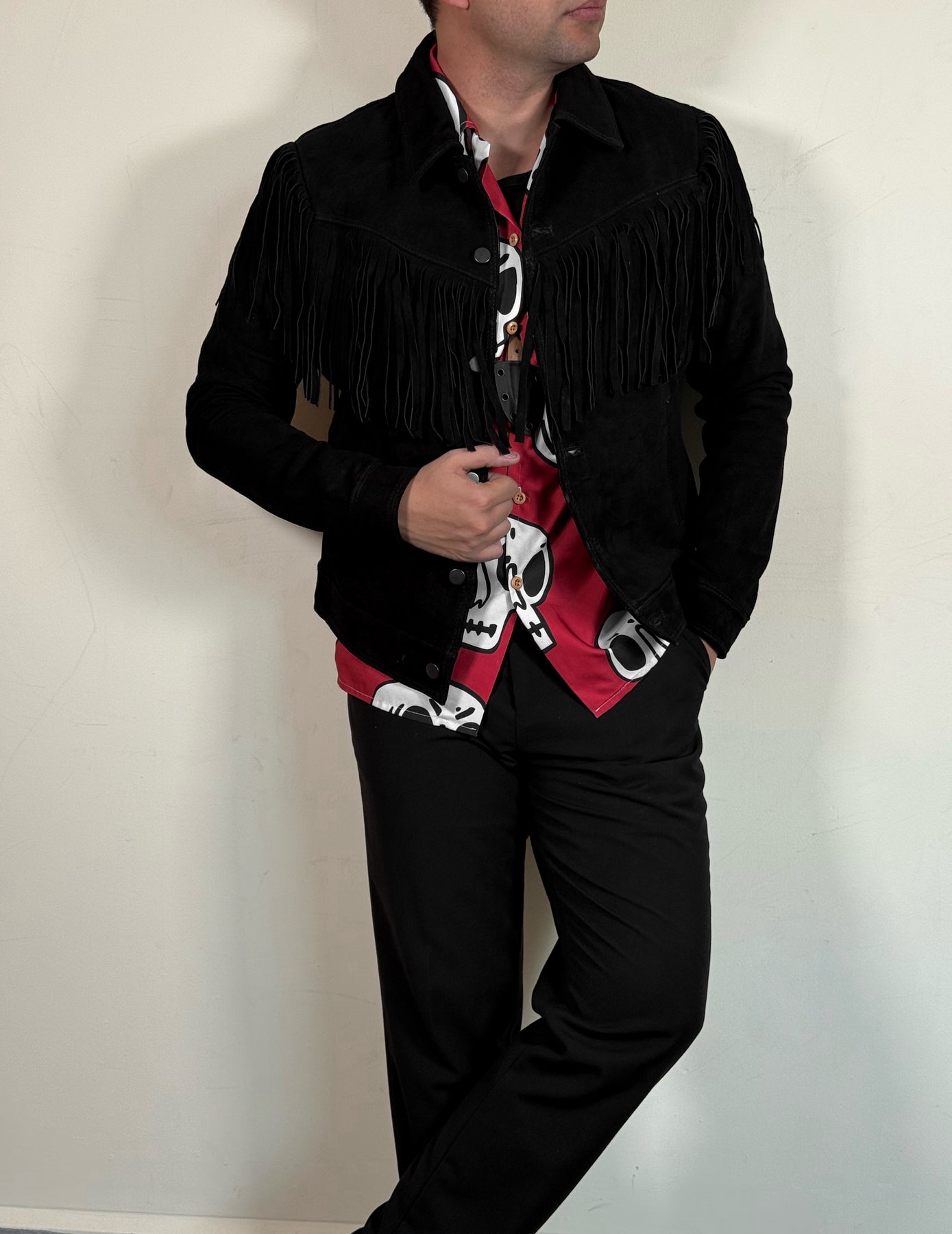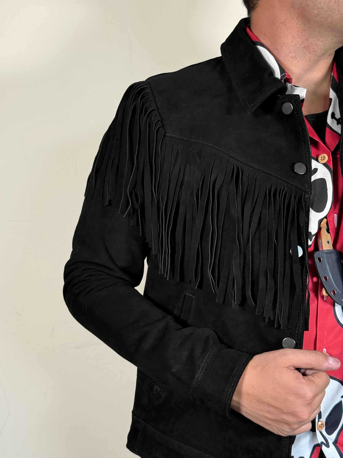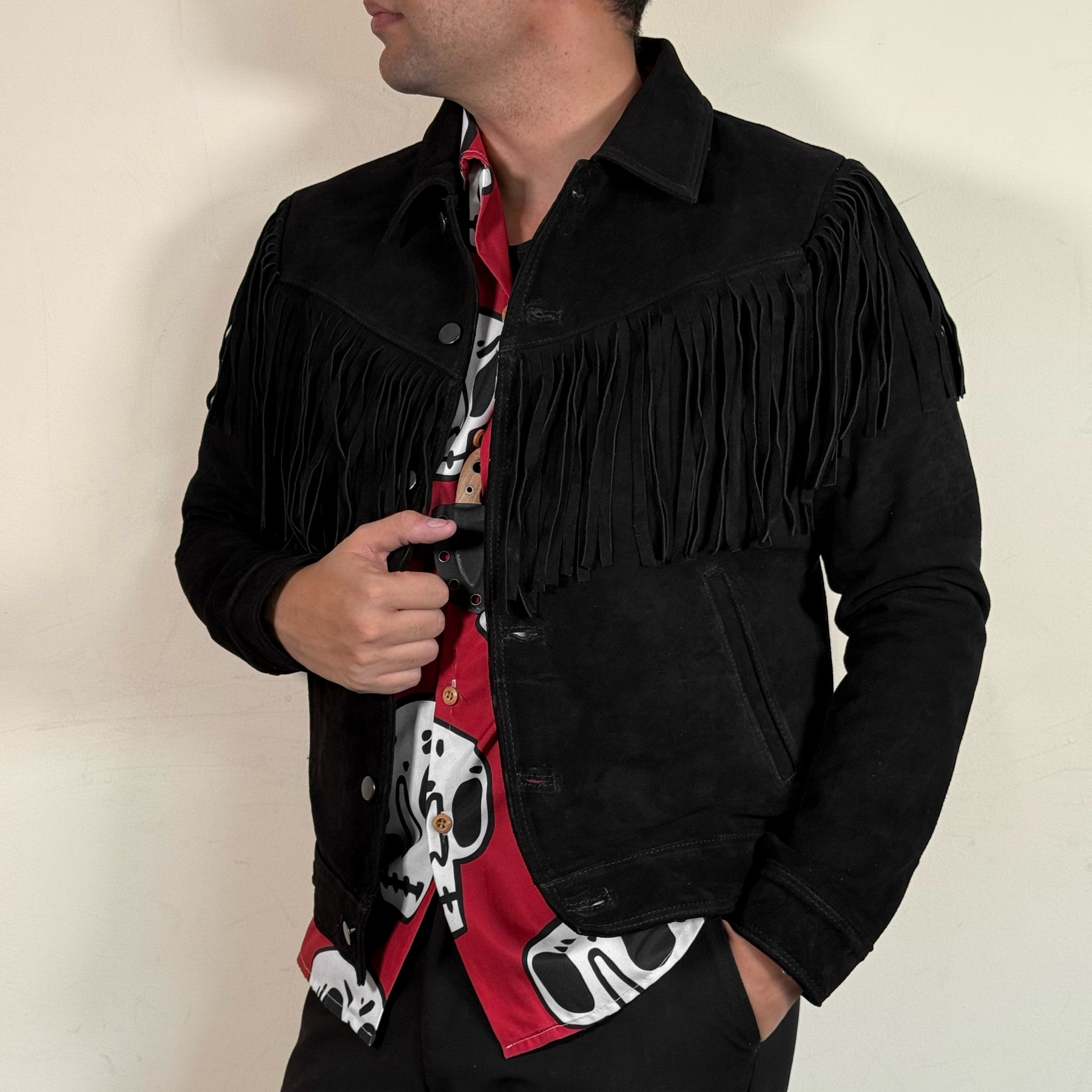 Chamarra 100% piel gamuza color negro