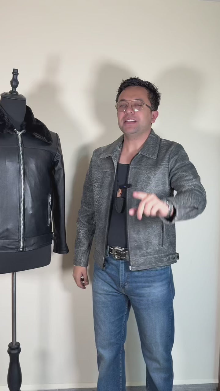 "Esta chamarra de piel genuina de corte croped es perfecta para cualquier atuendo. Su color negri En piel