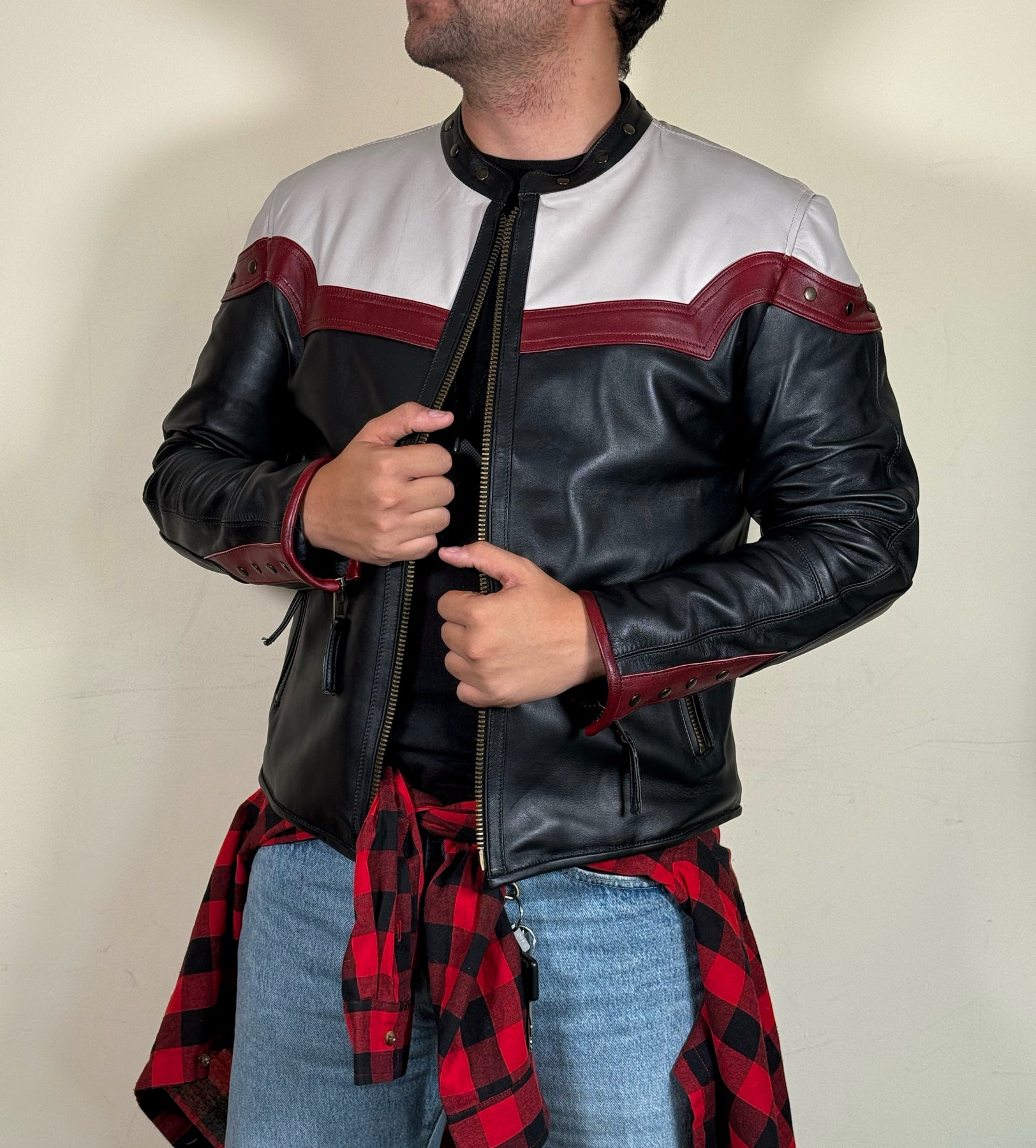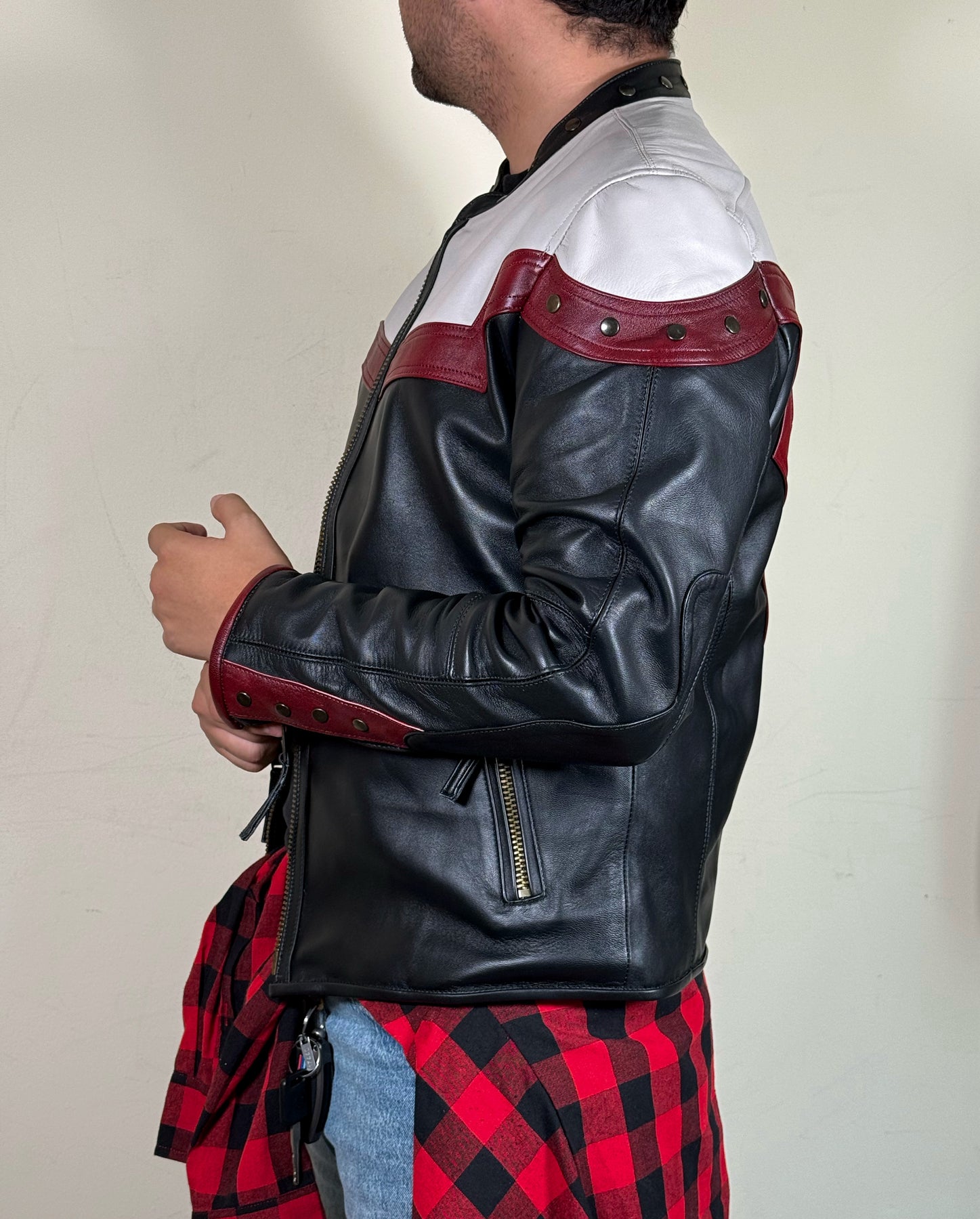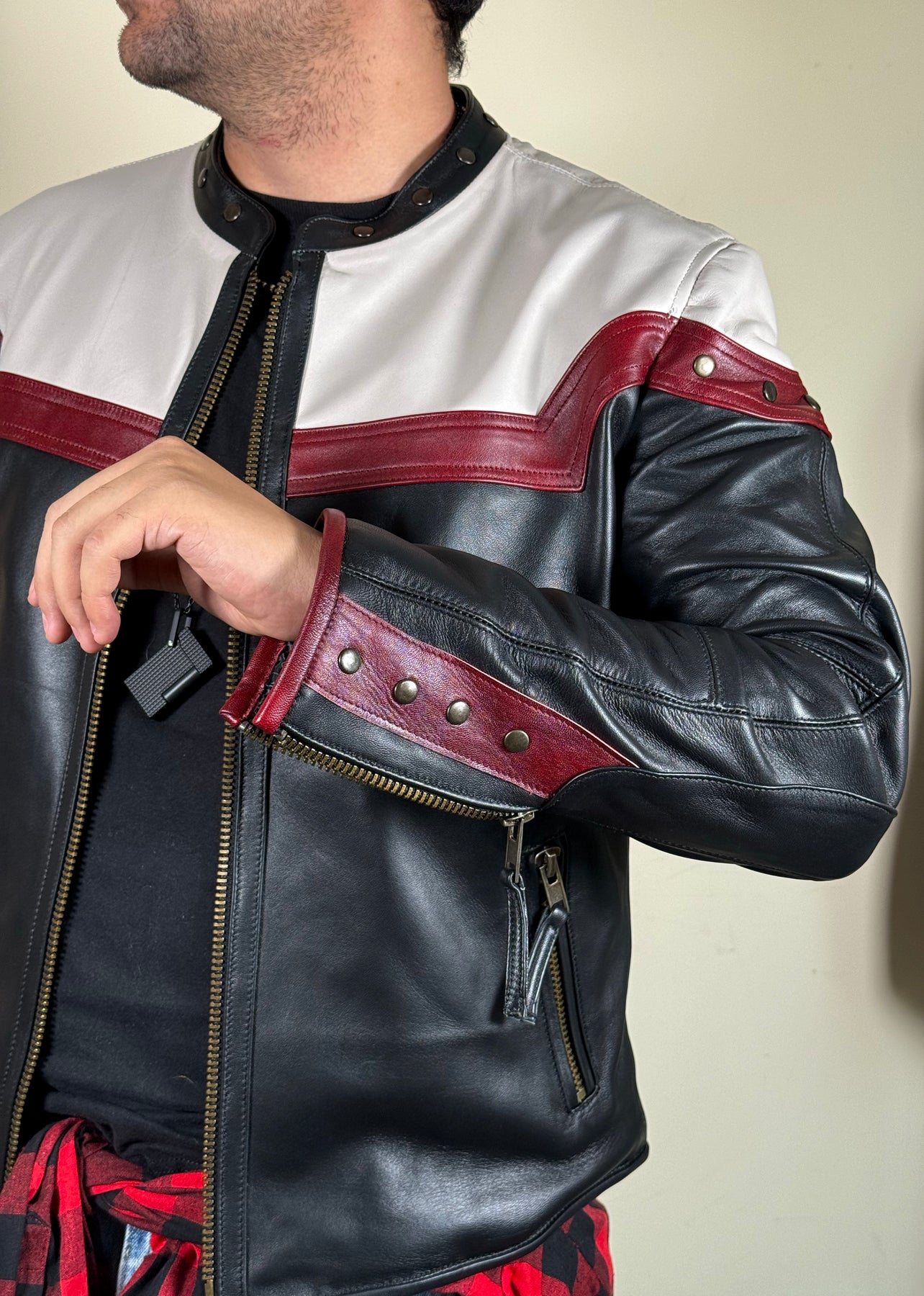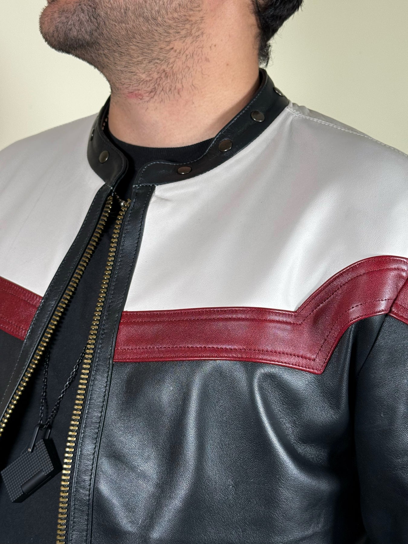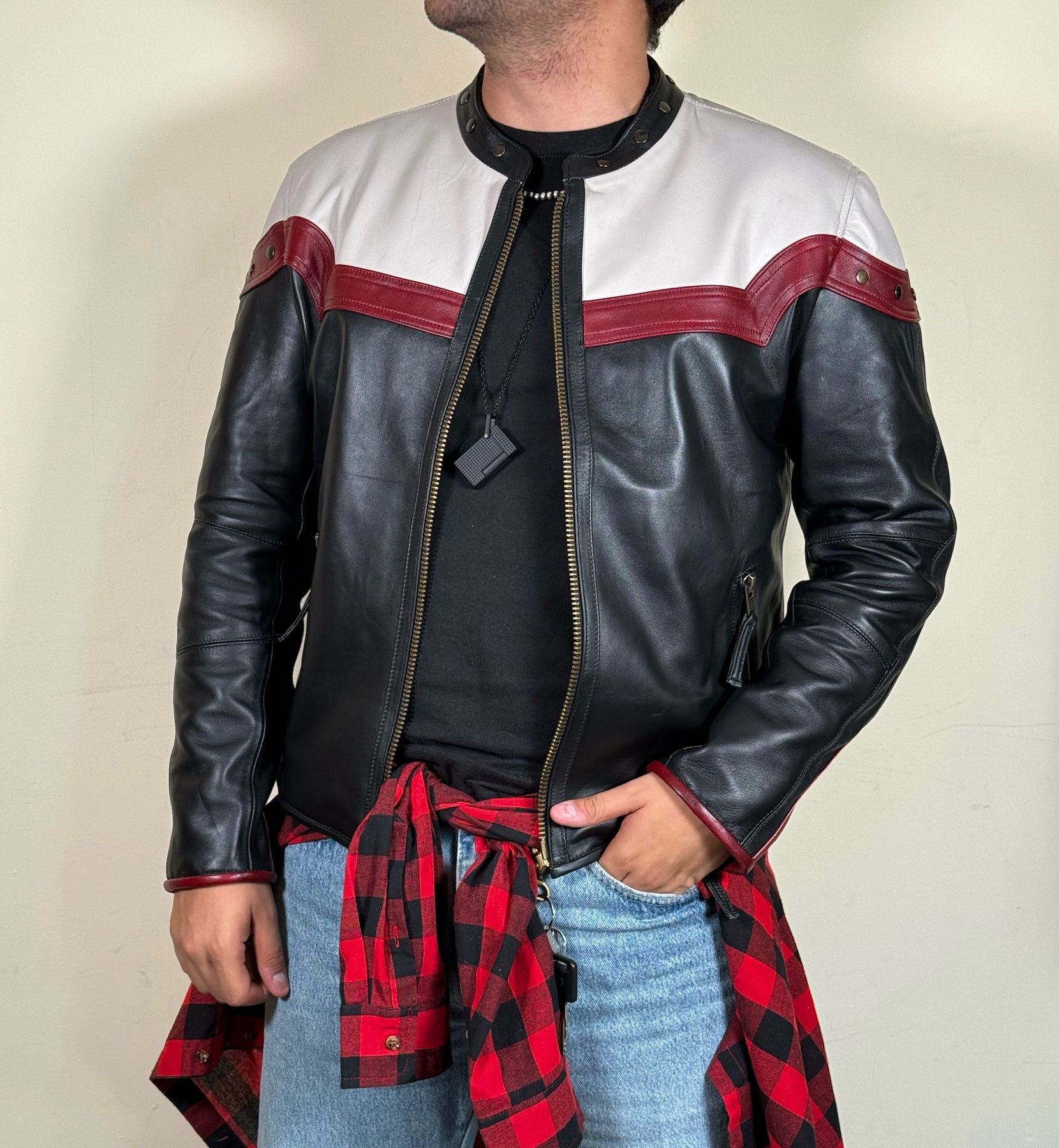 Karl Black Wine es una elegante chamarra de piel que combina tres colores y presenta un moderno estilo racer. Con un diseño atemporal y de alta calidad, esta chamarra no solo te mantendrá abrigado en cualquier clima, sino que también te brindará un aspecto sofisticado y a la moda. ¡Haz una declaración de estilo con Karl Black Wine!