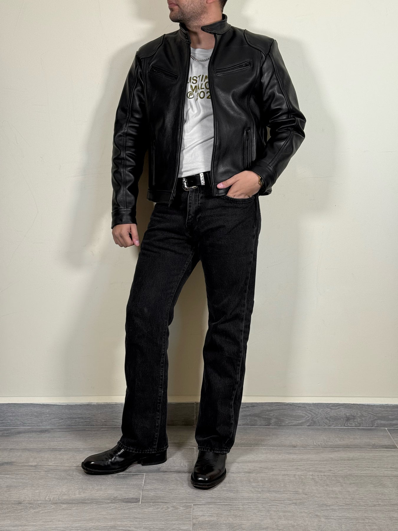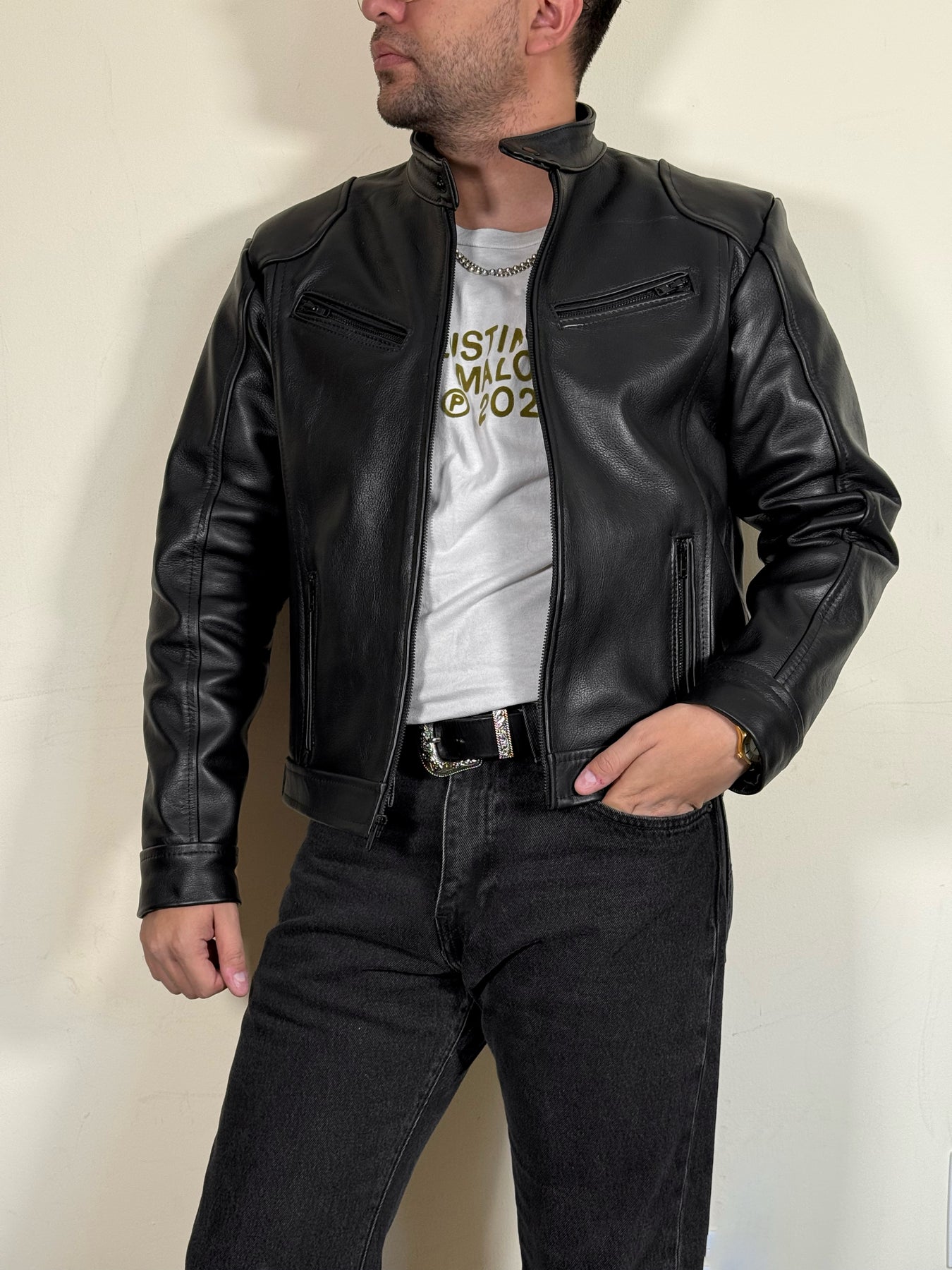 Esta chamarra de piel de borrego cuenta con un grabado de elefante único. La suave piel de borrego ofrece durabilidad y comodidad, mientras que el diseño del elefante agrega un toque de estilo y originalidad a su atuendo. ¡Consiga esta pieza de alta calidad hoy mismo!