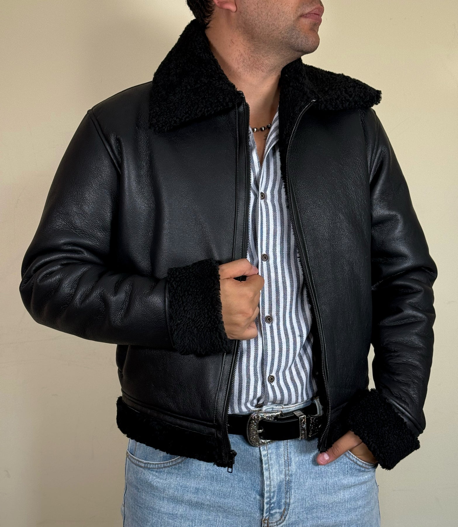 La chamarra de piel shearling de lana natural de oveja es perfecta para mantenerte abrigado durante el invierno. Con su material de alta calidad, te mantendrá caliente y cómodo en los días más fríos. Su diseño en piel también le da un toque elegante y sofisticado a tu atuendo.