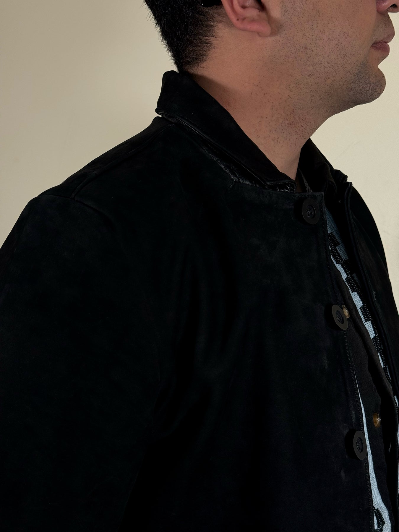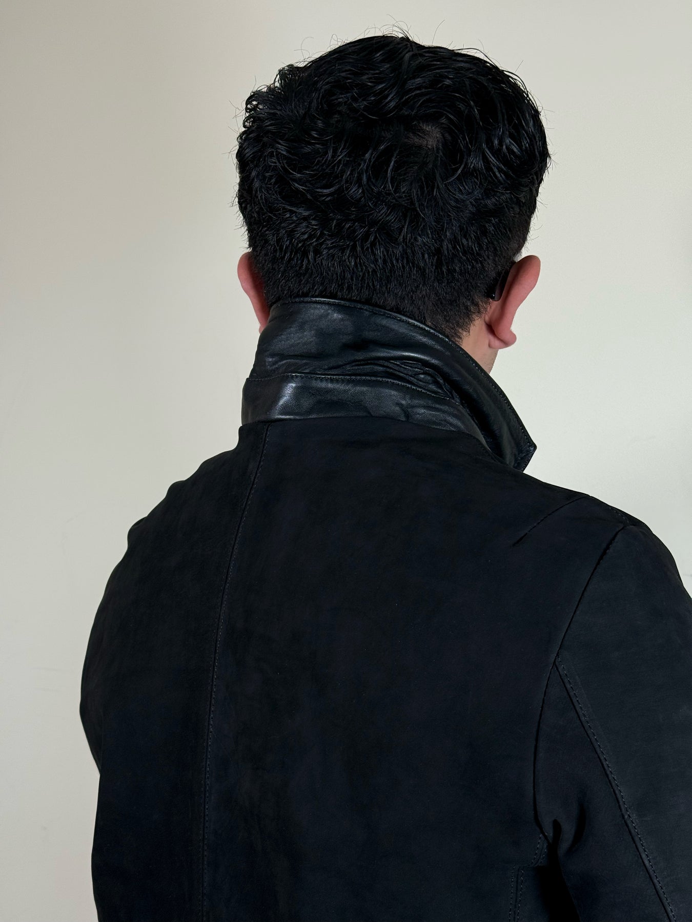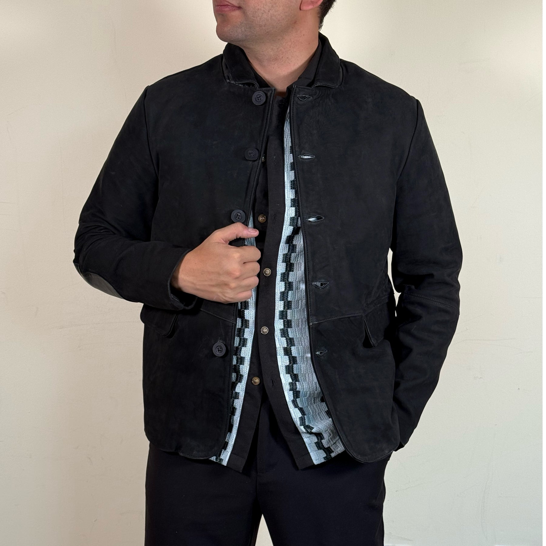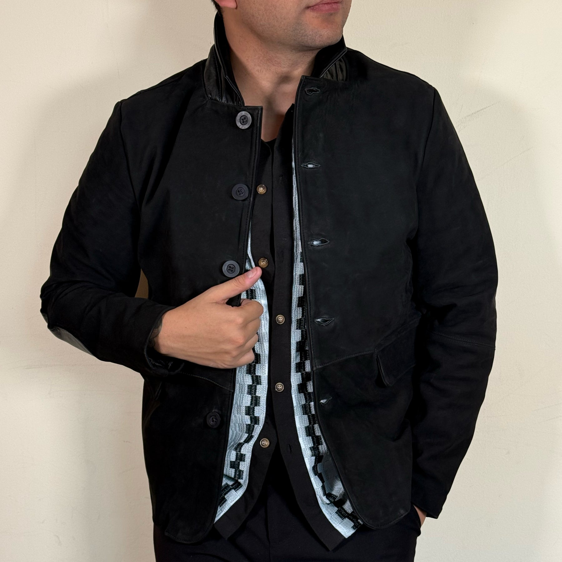 Esta chamarra tipo blazer de piel nobuck es elegante y versátil, con detalles en piel lisa que le dan un toque sofisticado. Hecha con materiales de alta calidad, te mantendrá abrigado/a y a la moda en cualquier ocasión. Perfecta para un look profesional o casual.