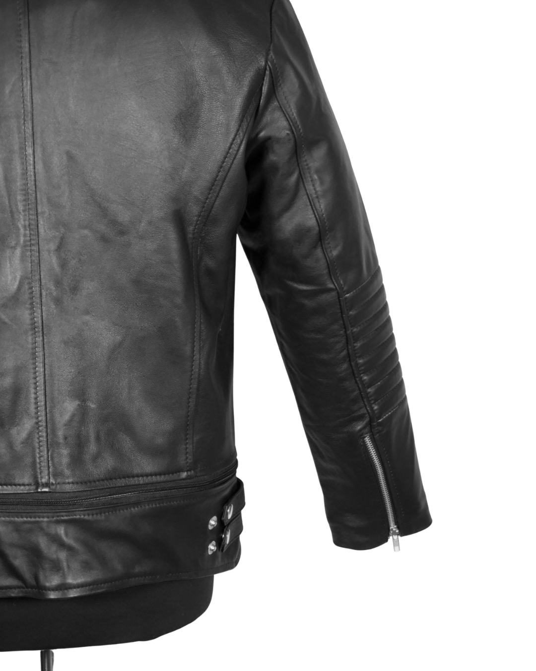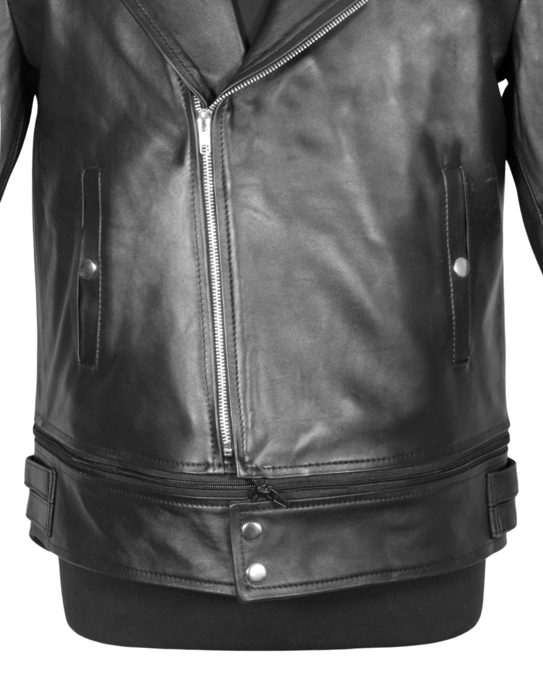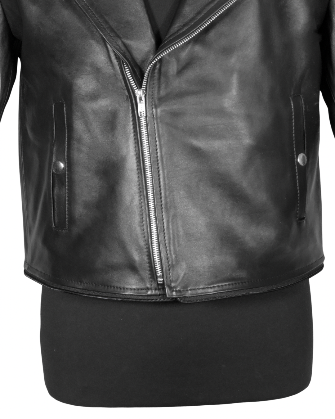 La chamarra Biker Dual Black ofrece una versatilidad única, permitiendo cambiar de un largo regular a un estilo cropped en segundos gracias a su zíper. Fabricada en piel de borrego, proporciona una excelente resistencia y comodidad, ideal para diversas condiciones climáticas.