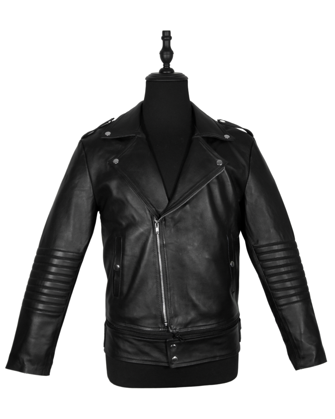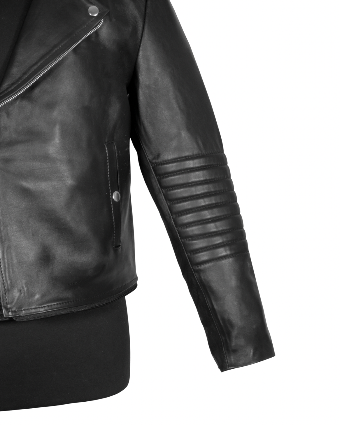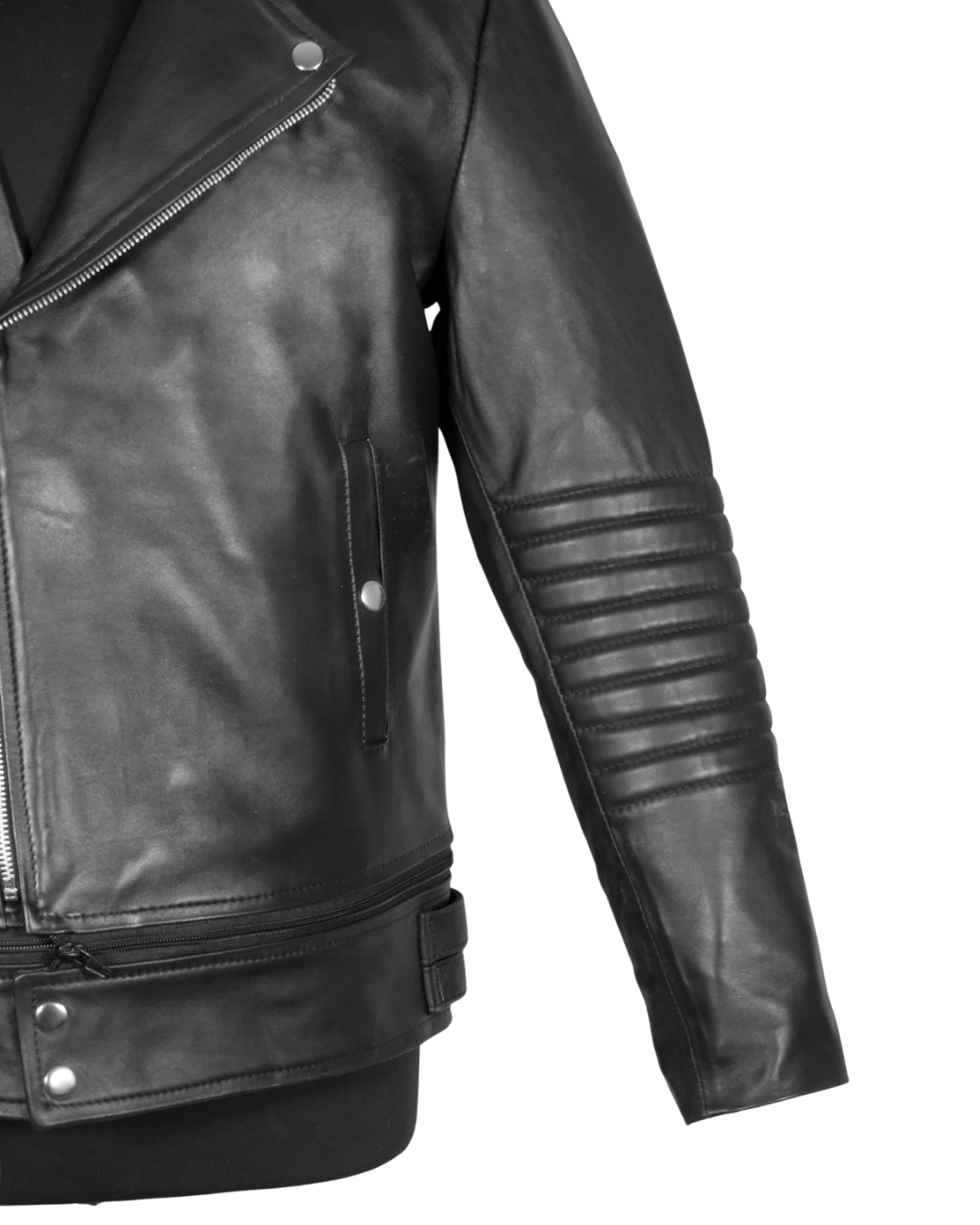 La chamarra Biker Dual Black ofrece una versatilidad única, permitiendo cambiar de un largo regular a un estilo cropped en segundos gracias a su zíper. Fabricada en piel de borrego, proporciona una excelente resistencia y comodidad, ideal para diversas condiciones climáticas.