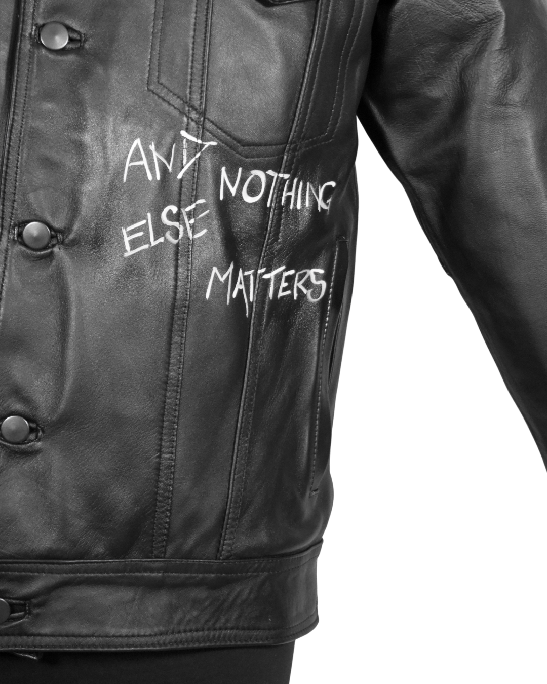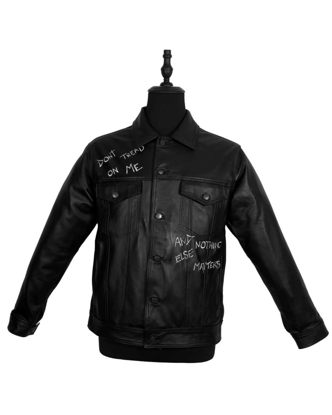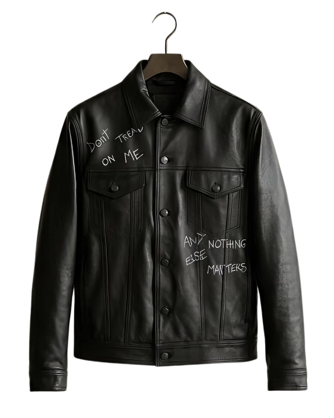 Obtén un estilo único con la chamarra Truker black metal, hecha de piel genuina y pintada a mano. Cada pieza es única, agregando un toque de exclusividad a tu armario. Mantente a la moda con esta chaqueta de alta calidad y diseño artístico.